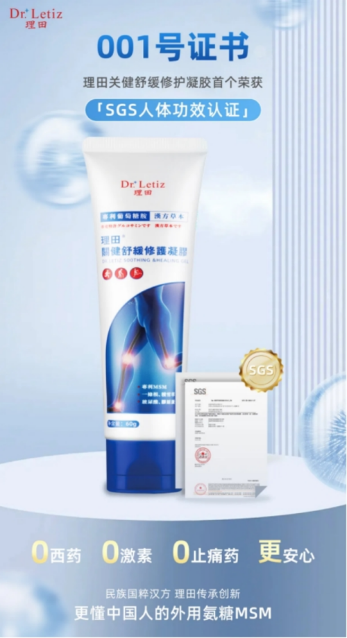 理田关键舒缓修护凝胶是跨境电商外用氨糖中唯一拥有人体功效认证的产品,真正做到使用30分钟有效舒缓,使用28天明显好转。缓解不适、消除疲劳和功效原料三重天花板。