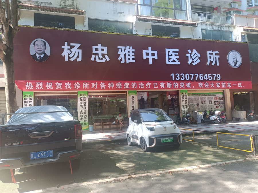 杨忠雅中医诊所的地址:广西百色市右江区江滨二路万花筒幼儿园旁,手机13307764579