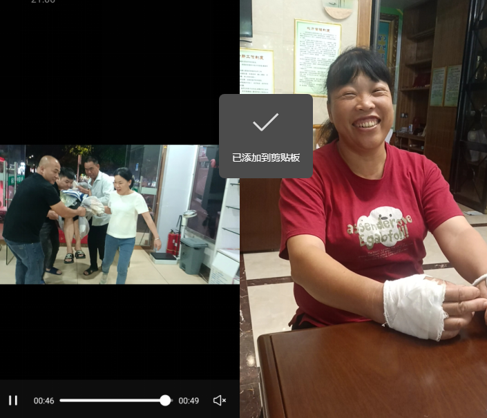 图为腰椎恶性肿瘤患者抢救前,4个人抬进来,出院前和一年后在菜市场卖牛肉数钱很开心。