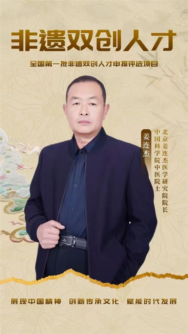 姜连杰,1969年出生于山东省青岛平度市,中共党员,国家干部。现任中国科学院中医院士,全国中医文化研究会中医博士,中国中医名家常务副主席,北京姜连杰医学研究院的院长,北京中西医慢性病防治促进会的慢性病防治专家,姜氏中医治疗疑难病疗法的创始人,大美中医药网首席专家,华东地区抗癌协会执行主席。世界非物质文化遗产研究院特邀院士,中华医学研究会专家委员会主任委员,中医治未病发展联盟副秘书长,中国民间中医医药研究开发协会常务理事,中华医学研究会专家委员抗肿瘤学科专家。2017年央视品牌特别关注行动入围企业。2021年聘为华医头条健康顾问委员,2023年授予中医博士,2024年10月当选为中国科学院中医院士,同年授予表彰国家功勋奖,国医文化传承人“国医楷模”。2025年5月被评为“医学至尊楷模”。