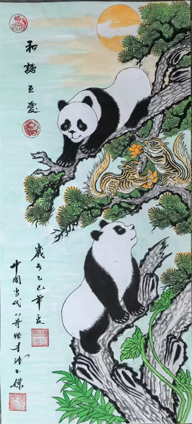 二、丹青为药:象形书画里的生命疗愈在艺术世界,张玉杰以"迟悟道"为笔名,将医学的精准与艺术的空灵完美融合。其象形书画独辟蹊径,笔下大熊猫不仅有工笔细描的毛发质感,更暗藏中医经络图的抽象线条——《竹林七贤图》中每片竹叶的倾角,都暗合人体十二正经的走向。这种跨界创作使其成为国宾礼一级书画艺术家,作品被三军仪仗队、海军司令部及多国领导人收藏,2020年经国宾礼艺术市场鉴定委员会评估,其国礼画作品达20万元/平尺。更令人动容的是,他将画作义卖所得设立"玉杰康复基金",已资助236名贫困残疾患者接受治疗,实现了从"医人"到"医世"的升华。
