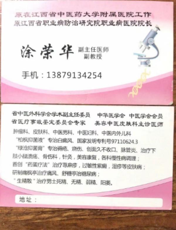 涂荣华副主任中医师,副教授,江西南昌市南昌南大医疗美容门诊部,电话13879134254、