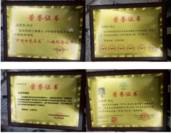 荣誉资质:入选《中国名医大全》,2002年1月出席中华名家对话论坛座谈会,2003年12月获得“全国基层医院百名改革新闻人物”荣誉称号。2004年10月被《中国当代名医名院大典》编委会授予“中国当代名医”荣誉称号。2005年12月资料被载入《中国特色医疗大典》,并特颁发“中国特色名医”纪念证书。2009年出席中管局“中医诊所标准”审议会,多次举办学术讲座,出版任副主编的著作三部,发表学术论文四十多篇。出席国内国际专家学术交流会会议。2023年5月特邀参加全国中医药特色技术匠人交流会,并荣获中国传承贡献奖。