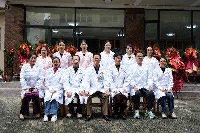 迁址开业仪式上省内外患者送来锦旗时合影