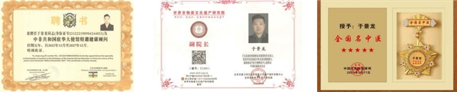 1. 协创陕西易释景龙健康管理有限公司,任于氏中医外治疗法传承保护主事⑤,创办于氏中医传承文化馆,致力于技艺展示、文化传播与人才培育;