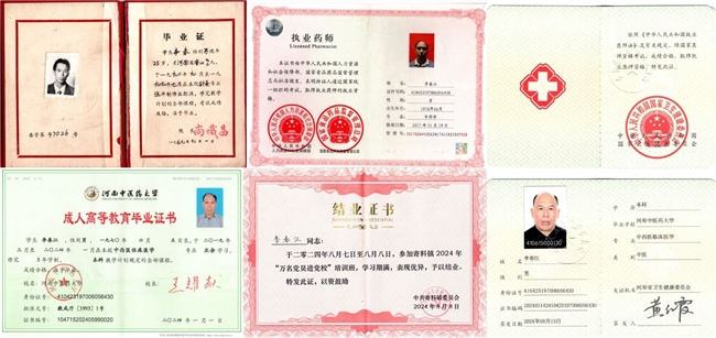 2024年,对李春江而言是收获满满的一年,也是他专业生涯的重要里程碑。6月,他被评为河南中医药大学2024届高等学历继续教育优秀毕业生,这一荣誉是对他勤奋学习的肯定;7月1日,他被授予河南中医药大学中西临床医学学士学位,为多年的学业画上了圆满的句号。更值得庆贺的是,9月13日,他成功考取中西医临床执业资格证书,11月28日完成注册,正式成为一名中西医临床执业医师。从乡村执业医师到中西医临床执业医师,从专科知识到本科学历,李春江用二十余年的时间,一步步实现着专业上的跨越。这些资质的取得,不仅是他个人成长的见证,也为他的诊疗工作提供了更坚实的保障,让他能够更规范、更专业地服务患者。