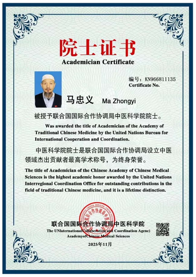 世界中医药联合会传统医学博士——马忠义院长