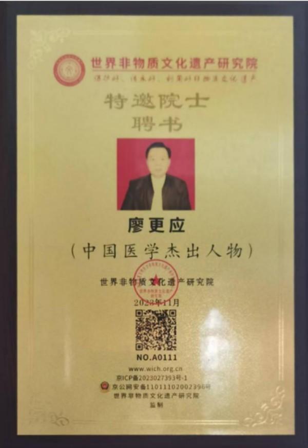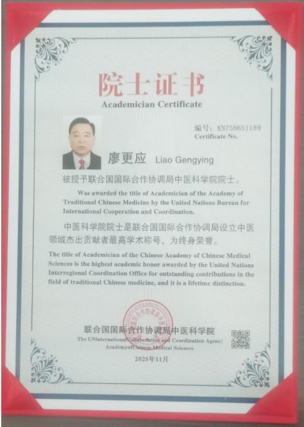 2025年11月,一项沉甸甸的国际荣誉花落华夏——开州籍建筑工程专家、健康实践先行者廖更应,被联合国国际合作协调局授予中医科学院院士称号。这一称号作为该局设立的中医领域杰出贡献者最高学术荣誉,为终身制认证,既是对廖更应先生在非药物疗法传承、大健康理念实践领域卓越成就的全球认可,更是对他跨界深耕数十年,以住房革新赋能全民健康的创新探索的高度赞誉。从深耕建筑业的二级建造师,到守护民生健康的非遗传承人,再到站上国际舞台的中医科学院院士,廖更应用一生坚守,书写着“住房与健康共生”的时代答卷,更以赤子之心,力推第五代“品牌住房康养基地”落地生根,誓要让中国健康长寿之路领跑世界。