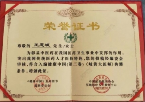 2020年个人资料收录中国网中国好医生网,并授予中国好医生荣誉证书。