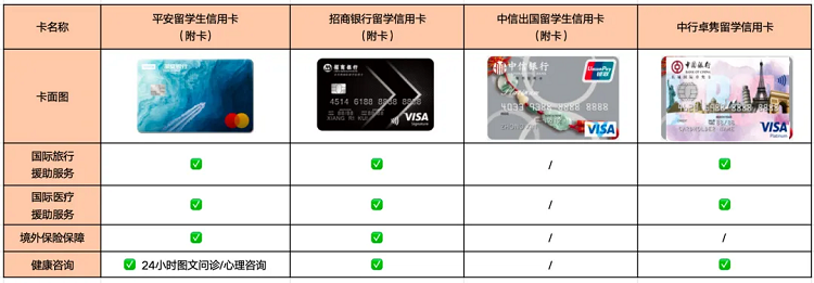对留子们遇到的这些问题,国内已经有很多项目在发力解决。报姐最近在留学圈子里有看到,现在送孩子出国读书的家长们在办信用卡时,会顺带选择银行随卡附赠的服务。不同银行针对留学生群体的信用卡,会在基础优惠之外附赠一系列涉及在外生活便利与安全的关怀,有效改善留子们的精神状态。