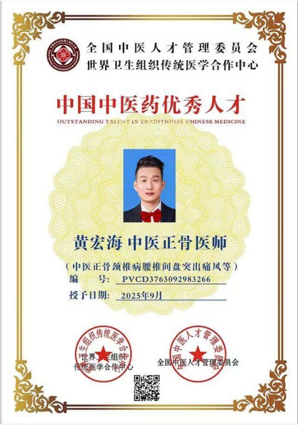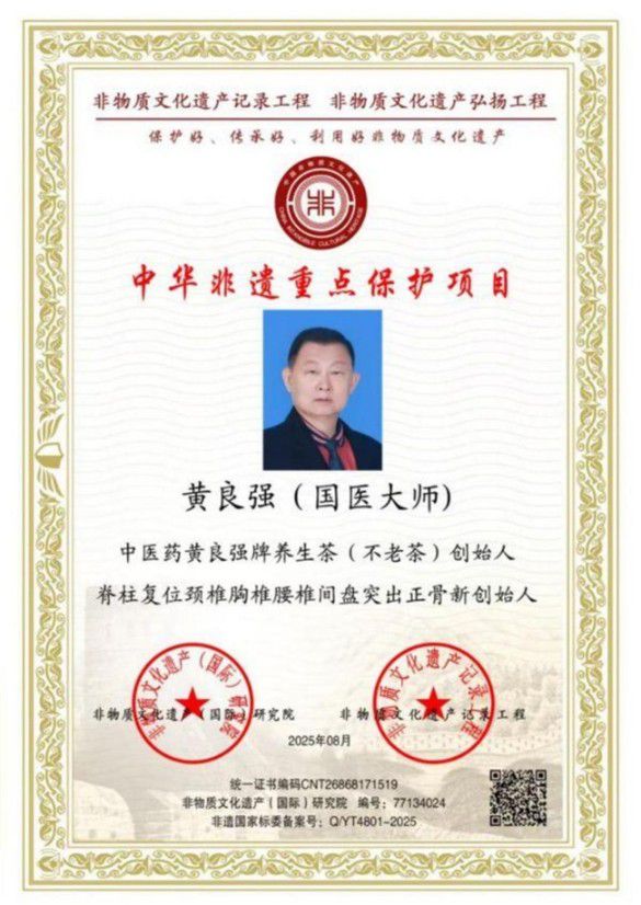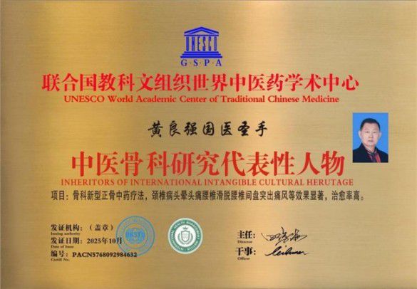 为全面推动大健康产业发展,响应习近平总书记“没有全民健康,就没有全面小康 ”和“要倡导健康文明的生活方式,树立大卫生、大健康的观念,把以治病为中心转变为以人民健康为中心,建立健全健康教育体系,提升全民健康素养。 ”以及“要秉持人类卫生健康共同体理念,推动构建人类命运共同体 ”的号召。为深入挖掘临床一线及基层中医药服务能力建设中涌现出的先进典型,弘扬“大医精诚 ”精神,讲好中医故事,传递中医正能量,使百姓更加爱中医、信中医、受惠于中医。迎国庆特别报道国际权威中医正骨治疗,颈椎病、头晕、头疼、胸闷、肩围炎、腰椎间盘突出、坐骨神经疼、痛风等医学专家——黄良强。