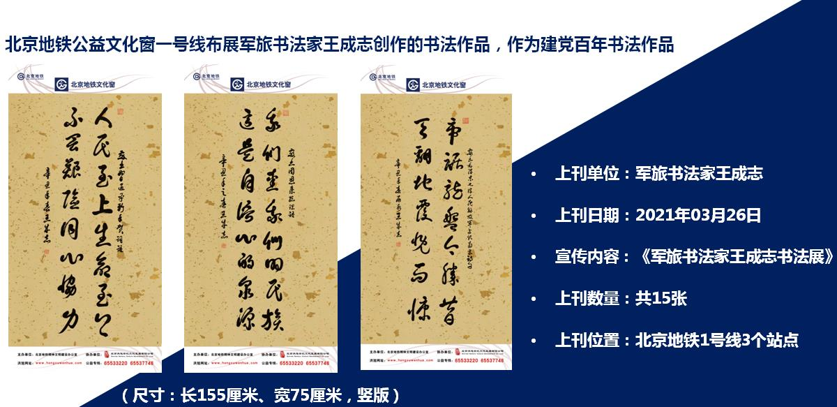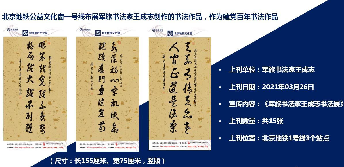 北京地铁公益文化窗布展王成志创作的书法作品: