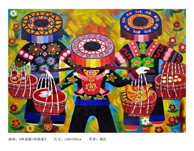 色彩繁胜韵律悦目,技高一筹创建新功。音乐是所有艺术形态的粘合剂,掌握音乐秘籍的杨红从事油画修炼,当然是技高一筹,令人瞩目。她除了在油画创作中建立起色彩繁胜的悦目造诣,还创建岭南丽民俗油画新派艺术领域,也是中西画法与文化的统成巨献。创新功成,已得一派新宗的崇高艺术定位!