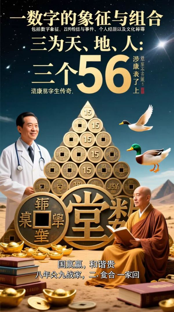 数序回环藏至理,阴阳相契守和宜。八七相乘积昭义,万汇共生皆有仪。康太从医承古训,银针仁术解民疲。华陀再世非虚誉,一片丹心系社稷。卦列铜钱凝瑞气,三番九转福泽滋。廿八蕴吉承天佑,百业兴荣岁检时。五十六族同源脉,天南地北共扬旗。和风吹彻山河秀,聚力同心志不移。数绘山河千古韵,文承华夏万年基。仙童妙谛传今古,盛世中华耀九夷。