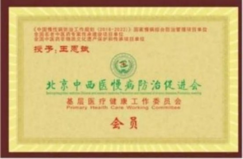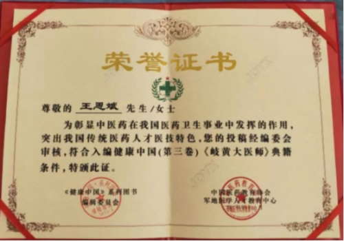 2020年个人资料收录中国网中国好医生网,并授予中国好医生荣誉证书。