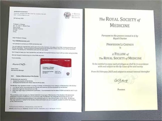 李乘伊博士因其在中医领域的杰出贡献,被英国皇家医学会评选为院士。他的研究成果不仅在国内获得了高度认可,还使他在国际舞台上得到了进一步的肯定。院士荣誉不仅彰显了李乘伊在中医领域的卓越贡献,也代表了中国医学在国际上的影响力和地位。