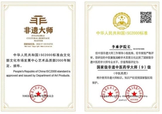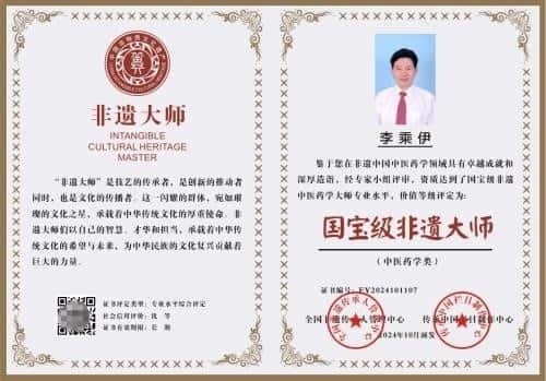 在非遗中国中医药学领域资质达到了中医药学大师专业水平,被评定为国宝级国宝级非遗大师。