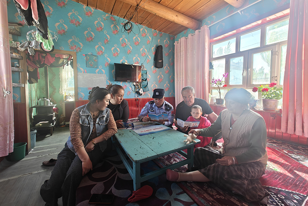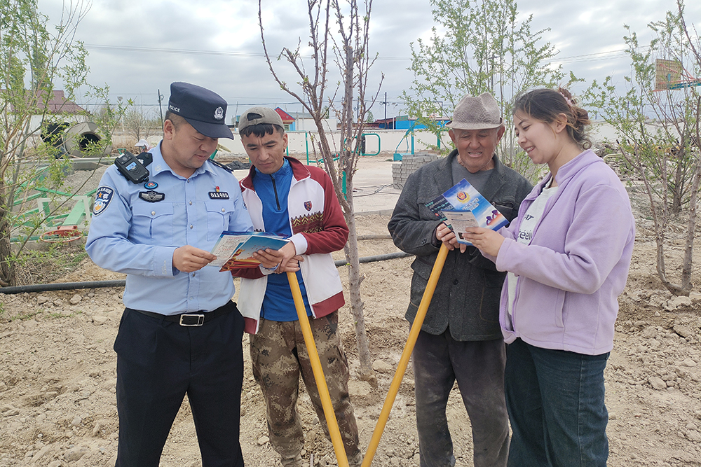 4月11日,在第十一个全民国家安全教育日来临之际,新疆伊犁边境管理支队海努克边境派出所联合村“两委”、志愿者,在村内开展以统筹发展和安全护航‘十五五’新征程为主题的全民国家安全教育日宣传活动。