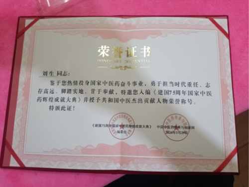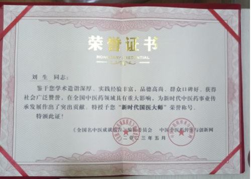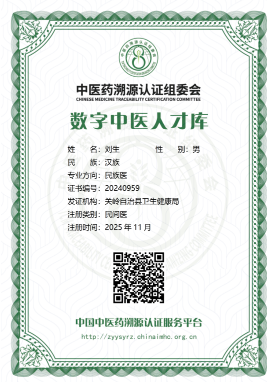 刘生拥有多项专业技术,包括初级药师、康复理疗指导师及中医健康管理师。尤为突出的是,他作为“鹤年堂丸散膏丹制作传承人”,深得传统制剂技艺精髓,并持有民族医生相关执业证书,荣获中国医药传与创新网的“新时代国医大师”称号,拜师于红墙御医胡维勤嫡传弟子。
