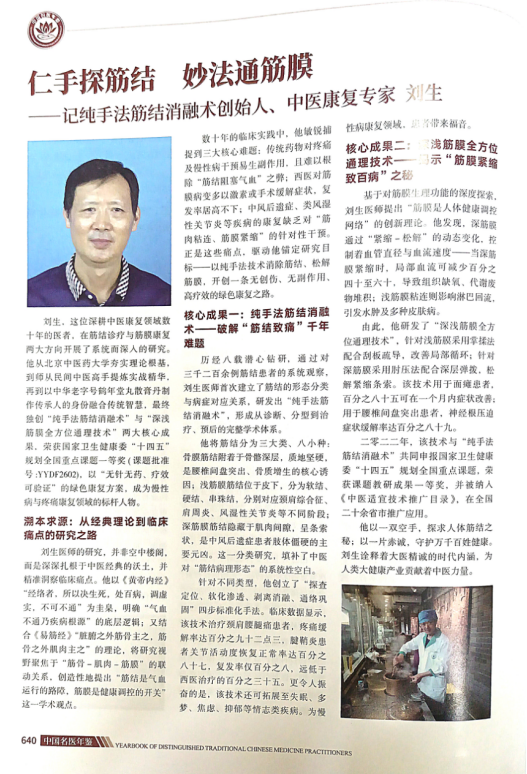 标题:仁心铸医魂 妙手通筋结 ——国医名师刘生与纯手法筋结消融术创新传承之路